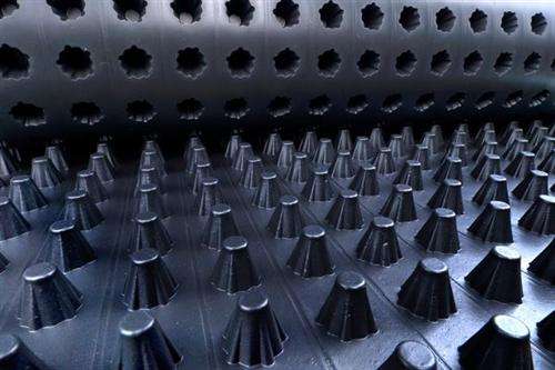 3.用于做建筑夾層板時(shí),蓄排水板鋪設(shè)在屋頂混凝土板上,蓄排水板外再砌一層單墻,或用混凝土來保護(hù),使地下滲水通過排水板的架空空間流入盲溝對集水坑。